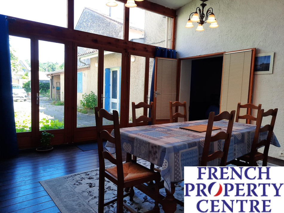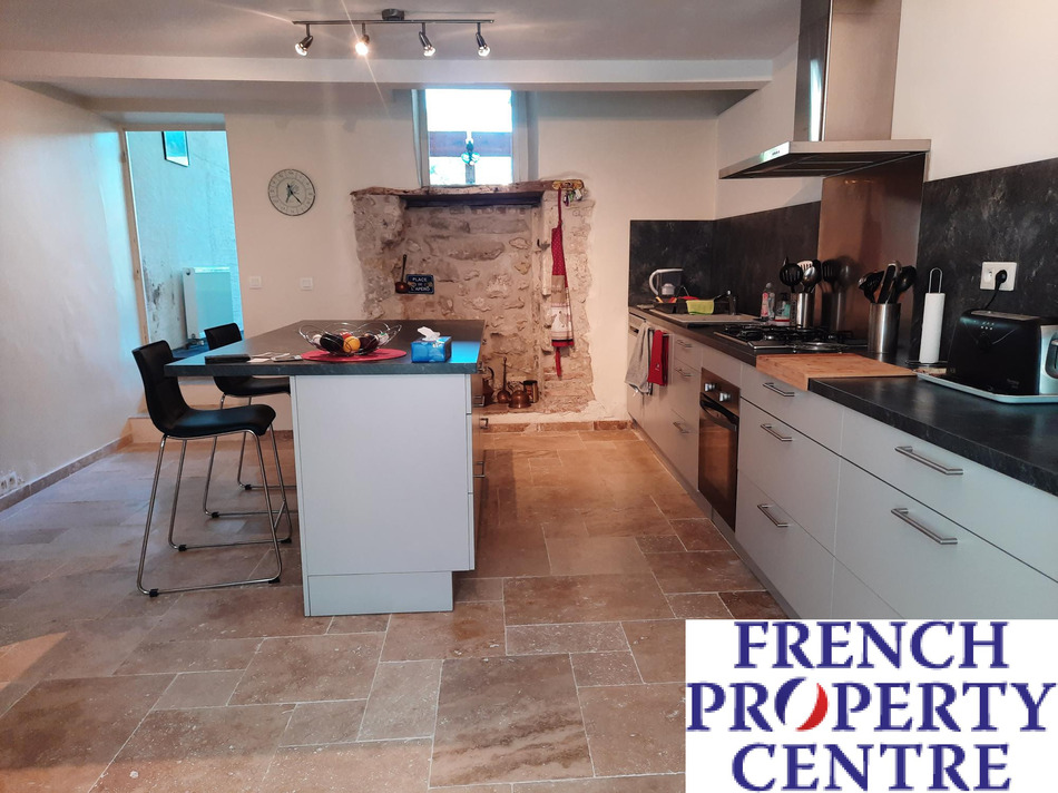 Charming, tastefully renovated village house comprising an entrance hall, fitted kitchen, living room, dining room, bedroom and en-suite bathroom-dressing room on the ground floor, as well as a mezzanine, two bedrooms and a shower room upstairs. The property is completed by a private garden and large courtyard, as well as an adjoining outbuilding used as a laundry room, toilet and shed. The house benefits from oil-fired central heating, a fireplace with insert, and mains drainage.