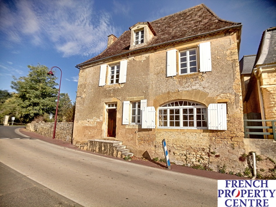 in this ever-popular village you will find this 19th century stone house within easy walking distance of shops and restaurants. The house has a living room with feature fireplace, a dining room and separate kitchen on the ground floor leading to a courtyard. Accessed from the courtyard there is a separate studio which has a large bedroom and shower room. On the first floor, there are 5 bedrooms and a bathroom. Outside, and across the road, there is a 400m garden and parking space, providing an impressive views of the valley of the Dordogne