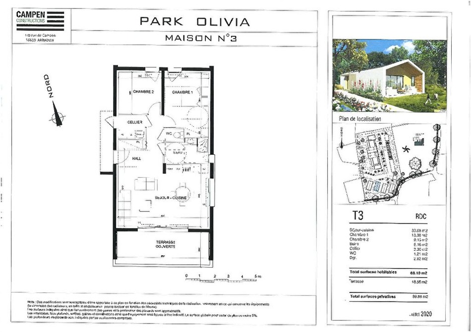 Maison de type 3 dans une résidence neuve entièrement sécurisée comprenant: hall d'entrée, cuisine, salon séjour , 2 chambres, un cellier, salle d'eau et WC séparé. Accès Terrasse couverte par le séjour/salon . Chauffage gaz. Espace vert au sein de la résidence dans un quartier calme. Deux places de parking au sein de la Résidence ou sur Option 1 place de parking et 1 Garage. Livraison 2ème trimestre 2022. Frais de notaire réduits. (2.10 % fees incl. VAT at the buyer's expense.)