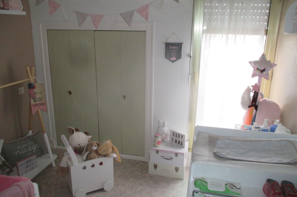 comprenant une entrée avec placards, un séjour-salon avec espace cuisine ouverte, 2 chambres, une salle de bains et un WC. 2 petits balcons.