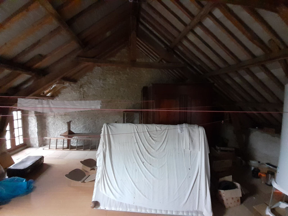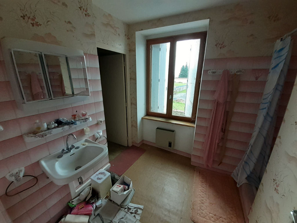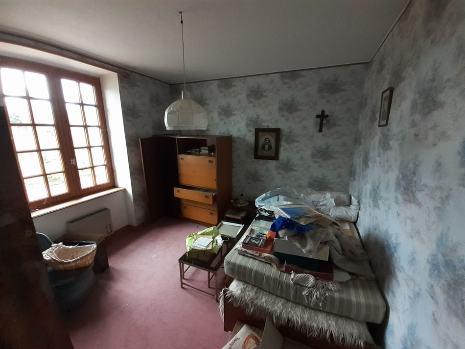 Maison d'habitation dans un hameau proche du bourg, habitable mais travaux à prévoir (électricité, assainissement, décoration). Le RDC offre un séjour orienté Sud, une cuisine, une chambre, salle de bains et WC, garage attenant. A l'étage 3 chambres, une salle d'eau, un WC et un grenier aménageable. Beau garage (portail motorisé) non attenant sur un terrain de 1542m². (8.16 % fees incl. VAT at the buyer's expense.)