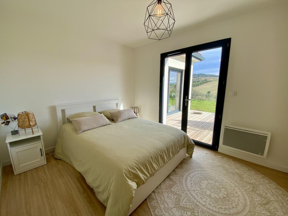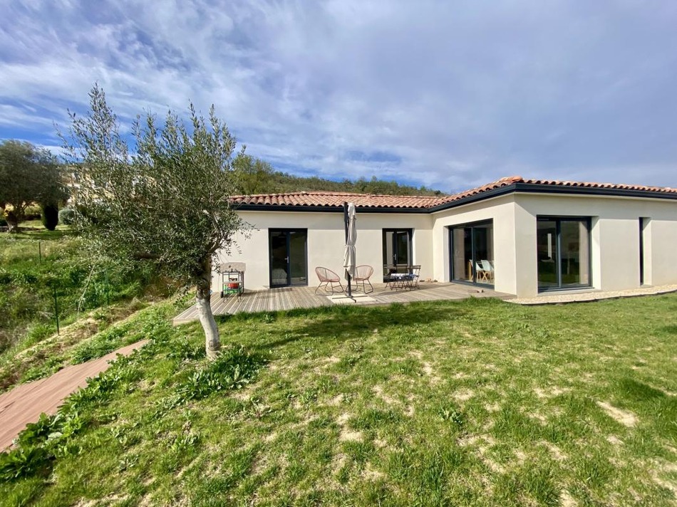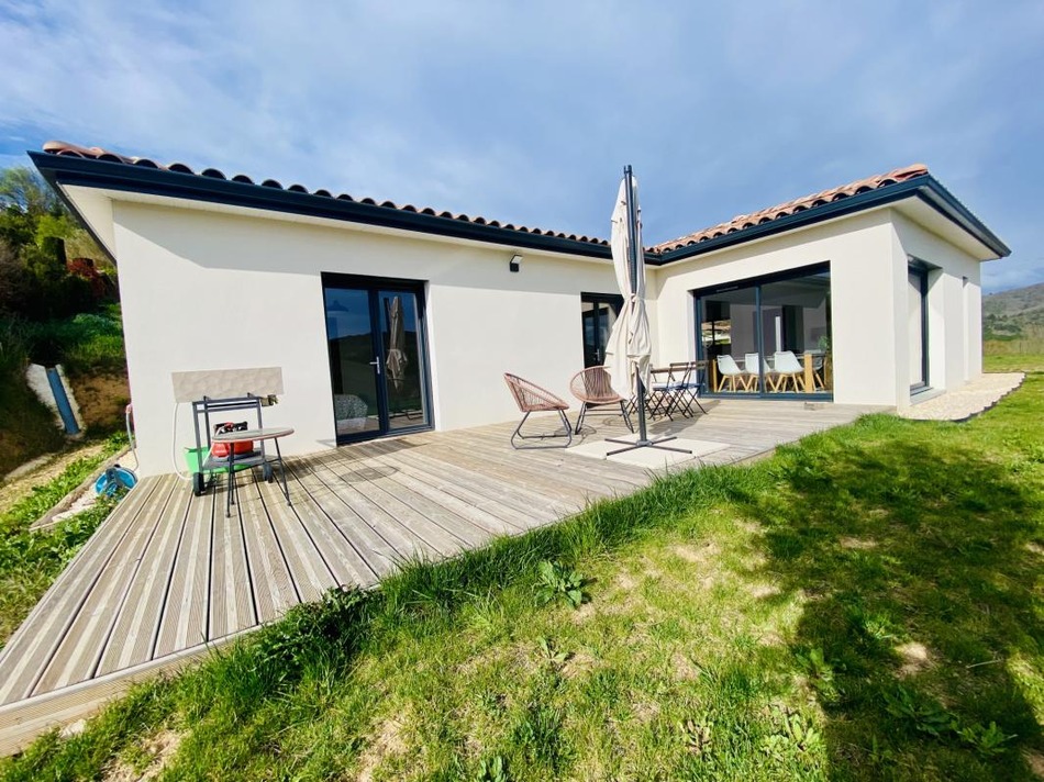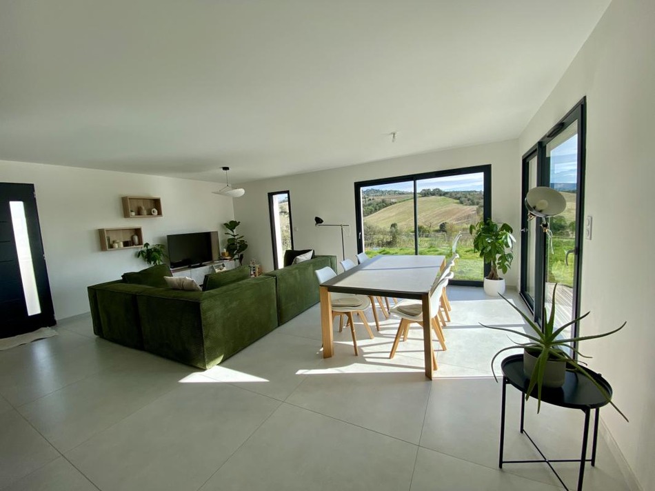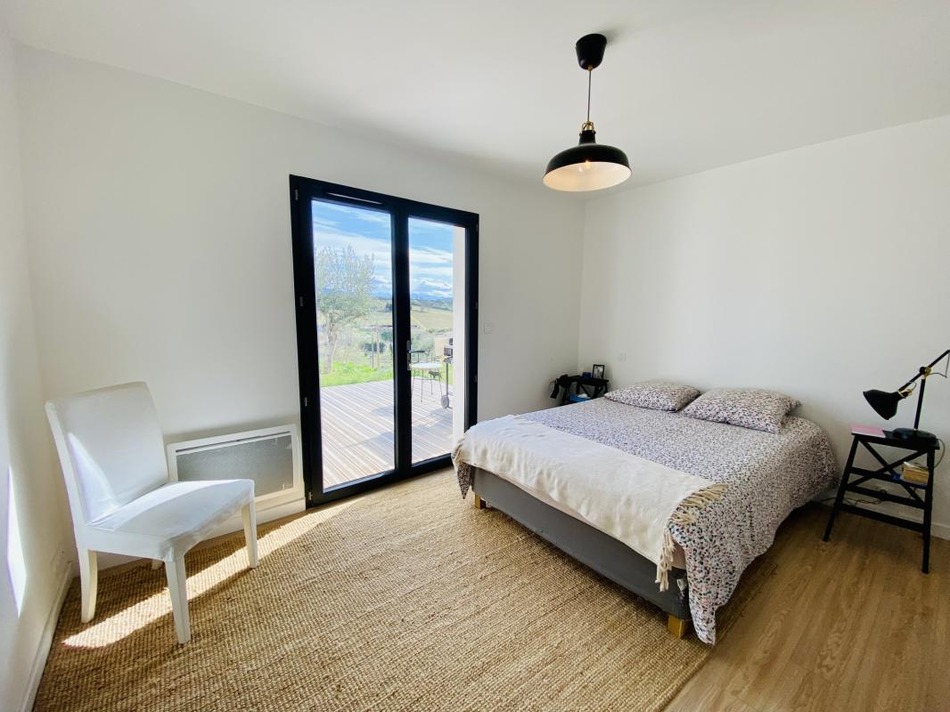 In a dominant position, with a breathtaking and unobstructed view of the Pyrenees, come and visit this magnificent villa from 2023 without further delay. The single-story villa is composed as follows: An entrance opens onto a large living room of 50 m2 with open kitchen, all bathed in light thanks to the large bay windows overlooking the exterior facing south, from this room you access the garage / laundry room of more than 19 m2. Then a corridor leads to a WC, a shower room and 3 beautiful bedrooms including a master suite with dressing room and shower room. All modern comforts enhance this superb 4-sided villa: thermodynamic cumulus, reversible air conditioning, aluminum frames, double glazing, roller shutters... Outside, a garden of approximately 500 m2 and a beautiful wooden terrace allow you to enjoy the panoramic view of the Pyrenees. The land is suitable for a swimming pool. Autonomous sanitation in micro-station. No work required, villa built in 2023 still under ten-year warranty. Come see us soon!