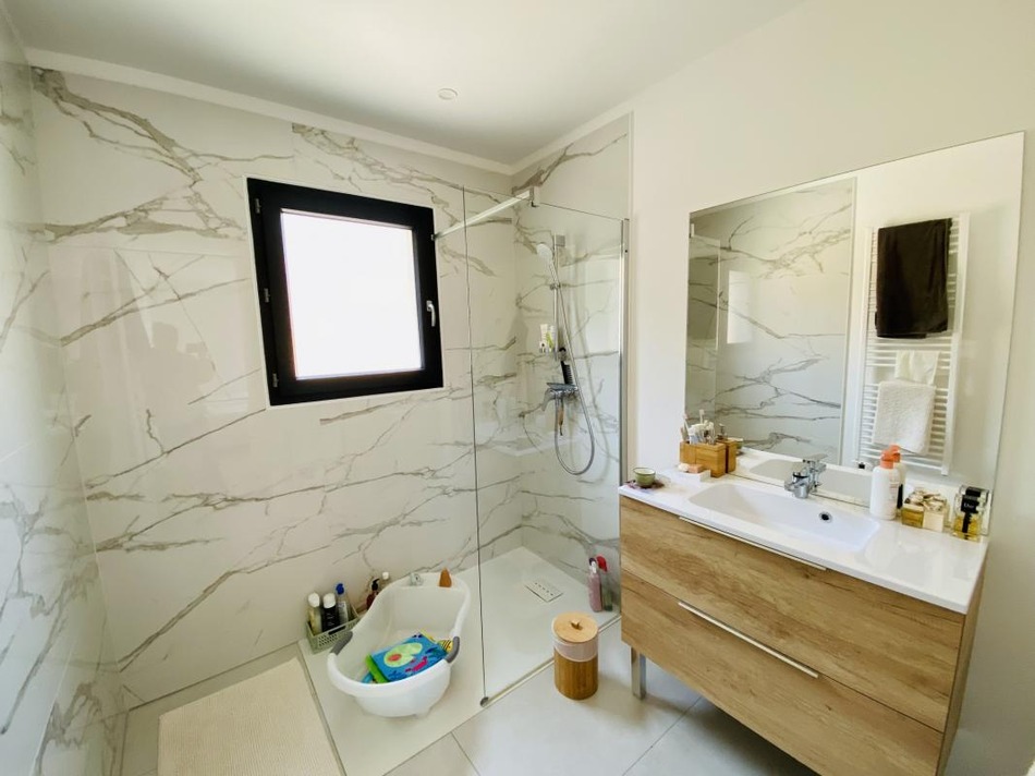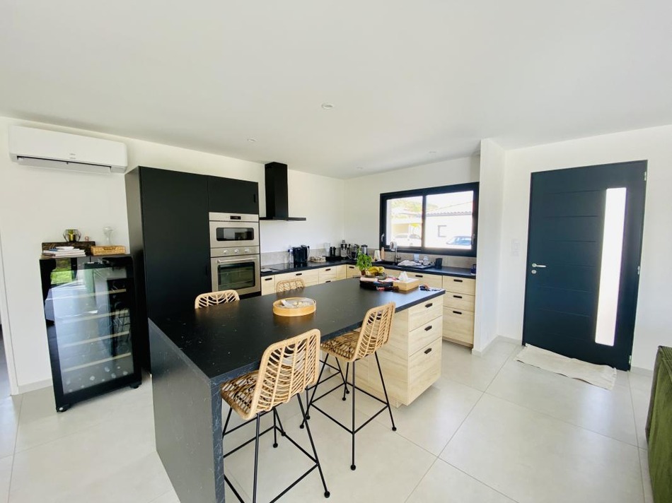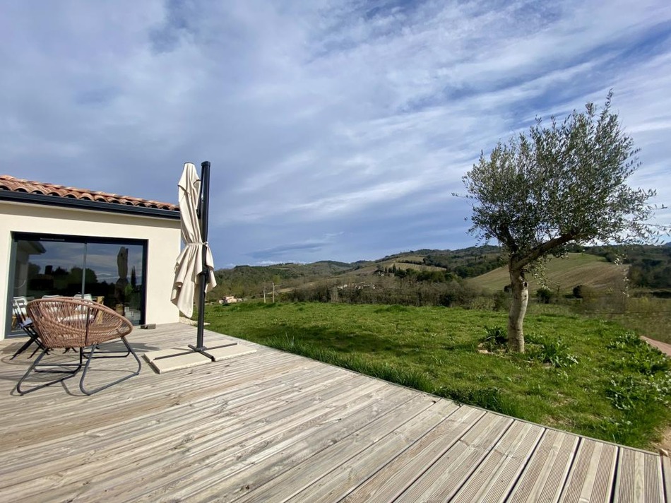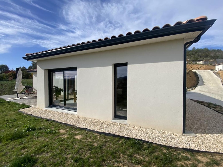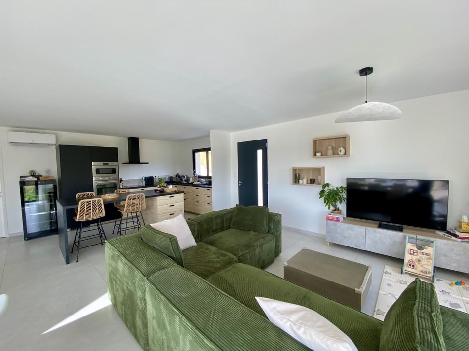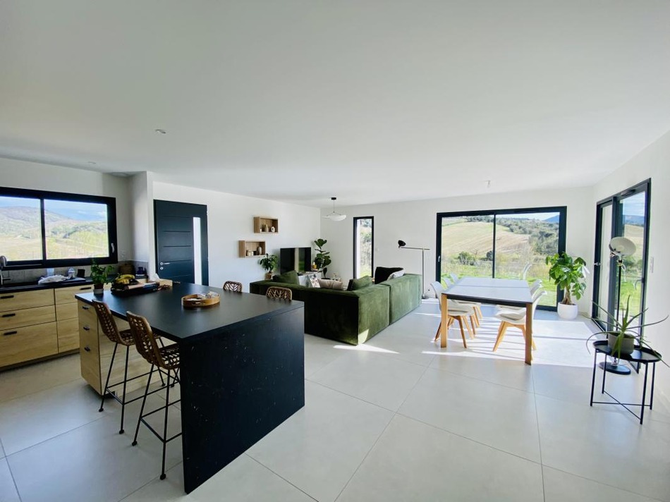 In a dominant position, with a breathtaking and unobstructed view of the Pyrenees, come and visit this magnificent villa from 2023 without further delay. The single-story villa is composed as follows: An entrance opens onto a large living room of 50 m2 with open kitchen, all bathed in light thanks to the large bay windows overlooking the exterior facing south, from this room you access the garage / laundry room of more than 19 m2. Then a corridor leads to a WC, a shower room and 3 beautiful bedrooms including a master suite with dressing room and shower room. All modern comforts enhance this superb 4-sided villa: thermodynamic cumulus, reversible air conditioning, aluminum frames, double glazing, roller shutters... Outside, a garden of approximately 500 m2 and a beautiful wooden terrace allow you to enjoy the panoramic view of the Pyrenees. The land is suitable for a swimming pool. Autonomous sanitation in micro-station. No work required, villa built in 2023 still under ten-year warranty. Come see us soon!