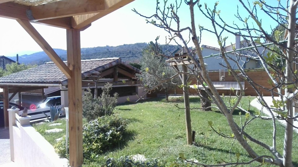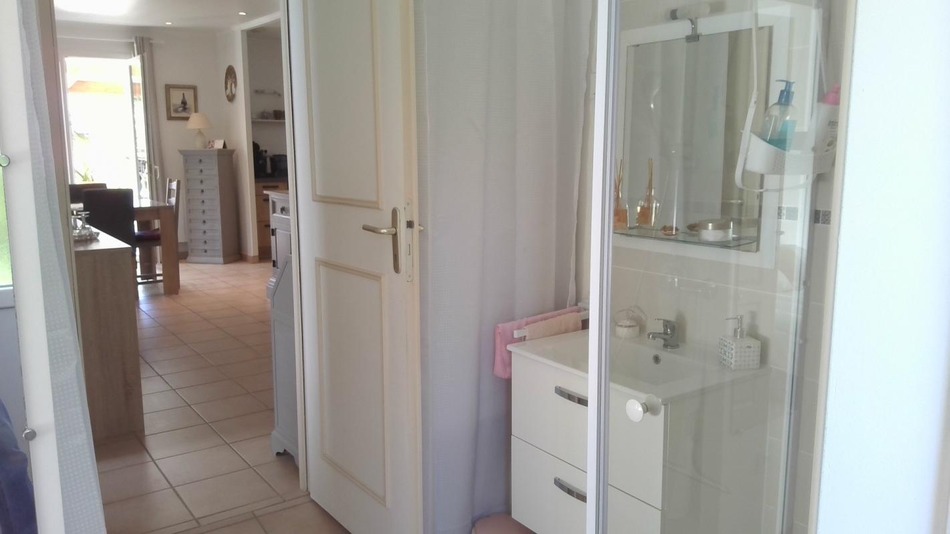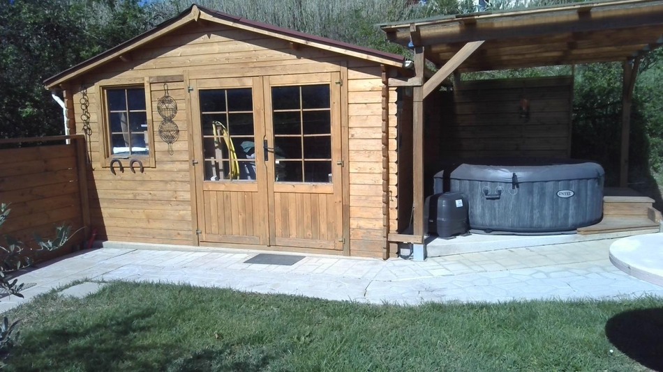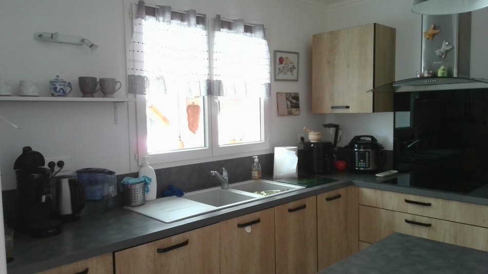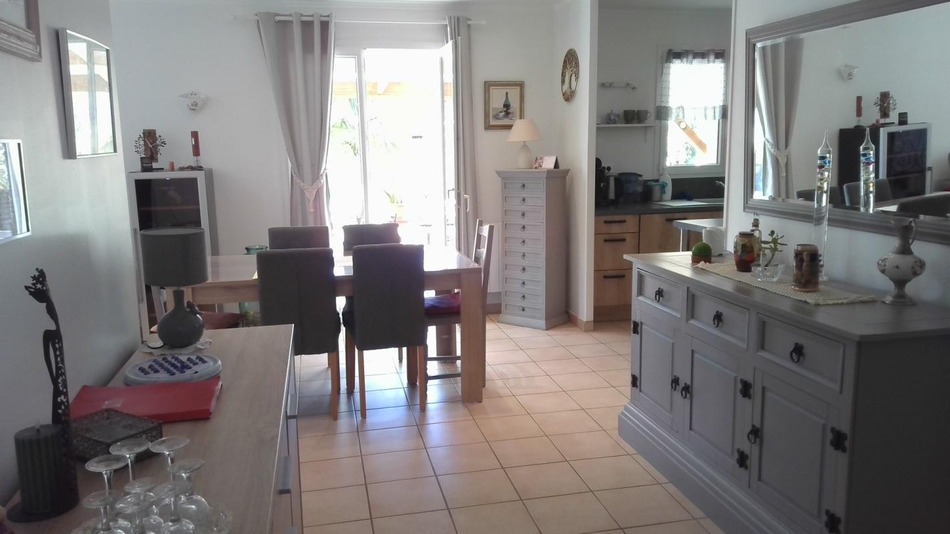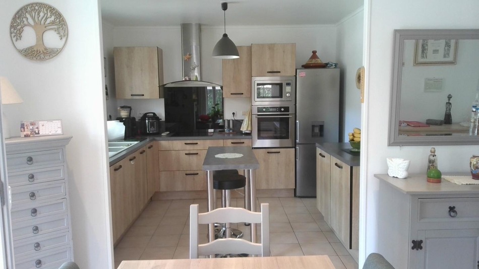 Beautiful single-story villa on a wooded plot of 750m2 - Carport, sheds and Jacuzzi New, fully equipped kitchen of approx. 10m2 opening onto a living room of approx. 30m2 3 bedrooms: 10m2 -11m2 and 10m2 + 7m2 (with shower room + WC) 1 Laundry room 1 Workshop 2 cabins 1 Jacuzzi Electric gate Covered terrace of approx. 25 m2