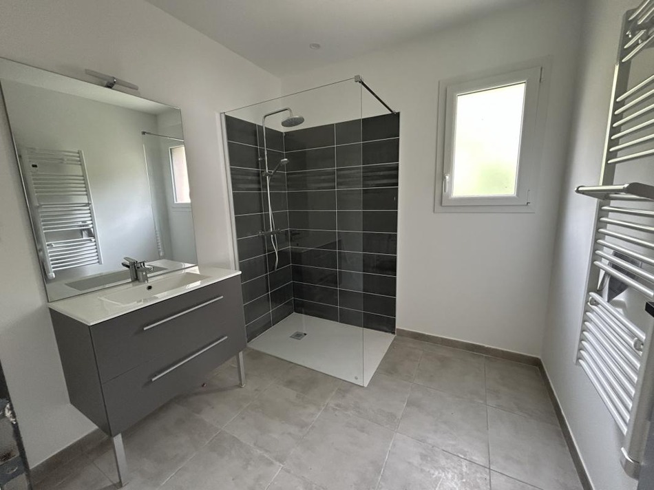 New single-storey villa of 100.92 m2 living space on enclosed, landscaped grounds of 330 m2. 20 m2 garage, terrace, air conditioning, 45 m2 living room-equipped kitchen, 3 bedrooms with fitted wardrobes, shower room and storeroom. REDUCED NOTARY FEES - 2-YEAR EXEMPTION FROM PROPERTY TAX - BUILDING DAMAGE INSURANCE - ENERGY CLASS A -