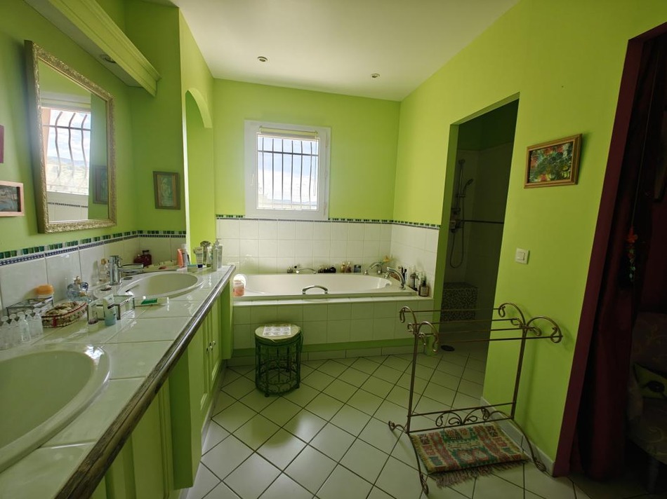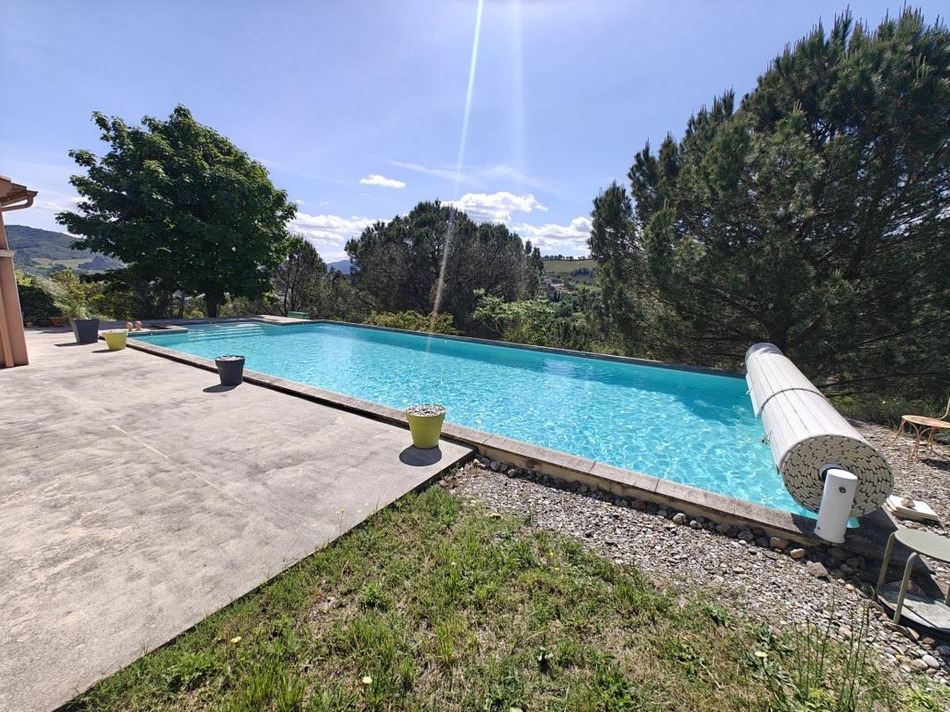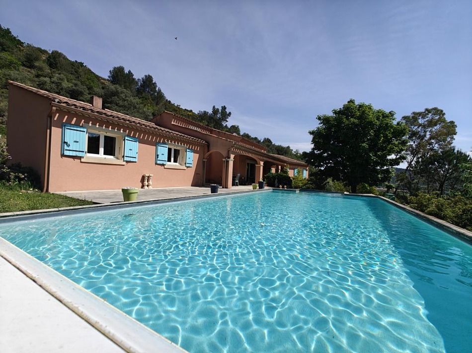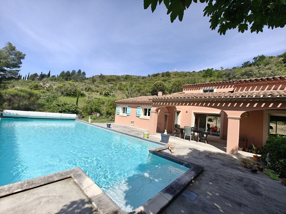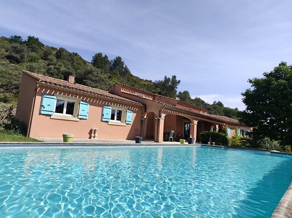 In the commune of Limoux, 173 m2 villa, traditionally built, comprising a living room with mezzanine, a spacious fully equipped kitchen, 3 bedrooms, one of which is a master suite with dressing room and bathroom, and a shower room. In the basement, a large garage and several storage spaces. Two covered terraces, one facing south, facing the swimming pool, the second to the north, allowing you to eat in the shade in the middle of summer. The plot of land of more than 6000 m2 surrounds the villa, the view from the south terrace is breathtaking.