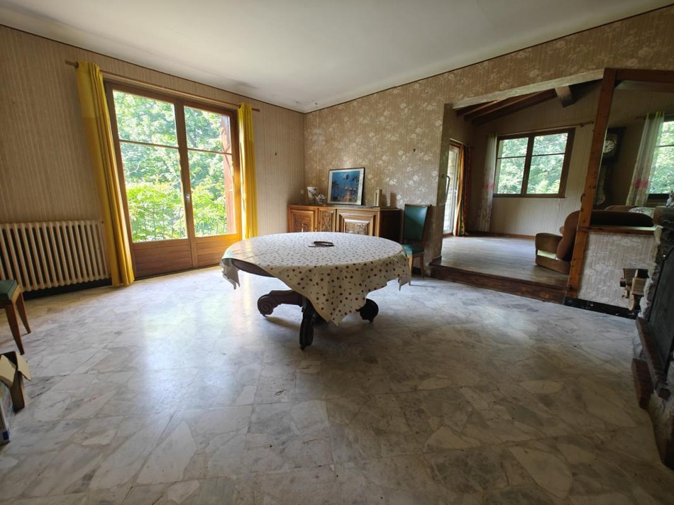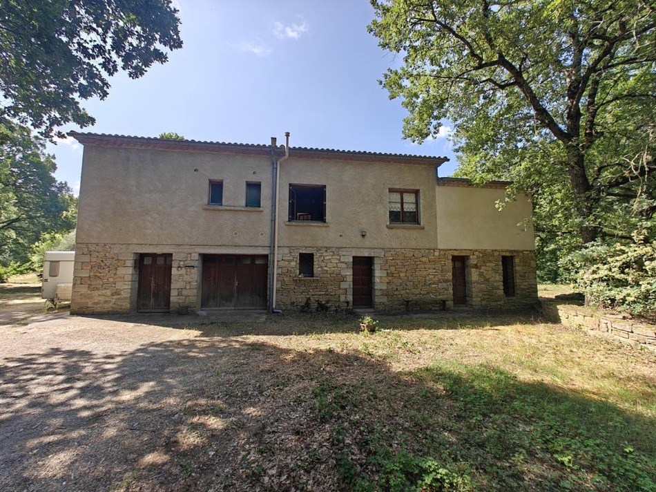 Limoux 9 km, country house, in the middle of century-old mountains, meadow, garden level, small apartment. Upstairs, kitchen, 3 bedrooms, office, terrace, garage and outbuilding Central heating, solid construction, septic tank