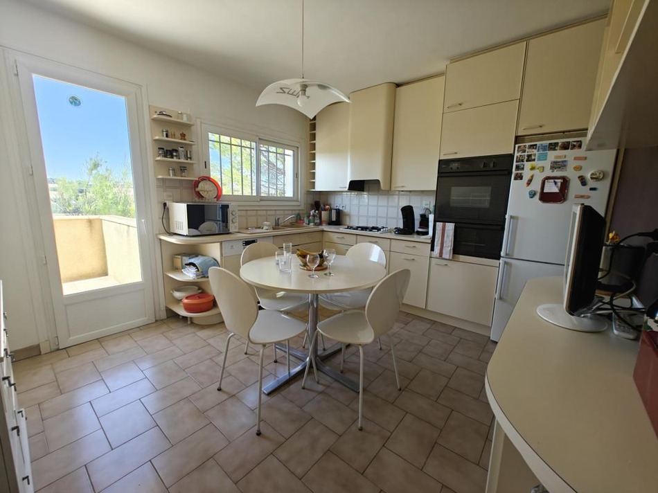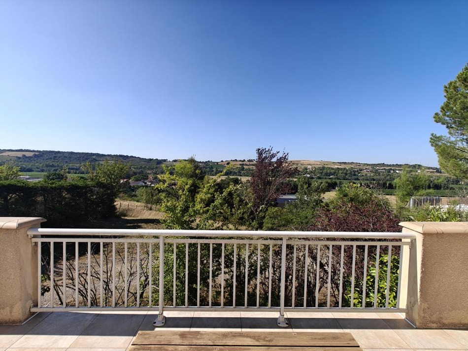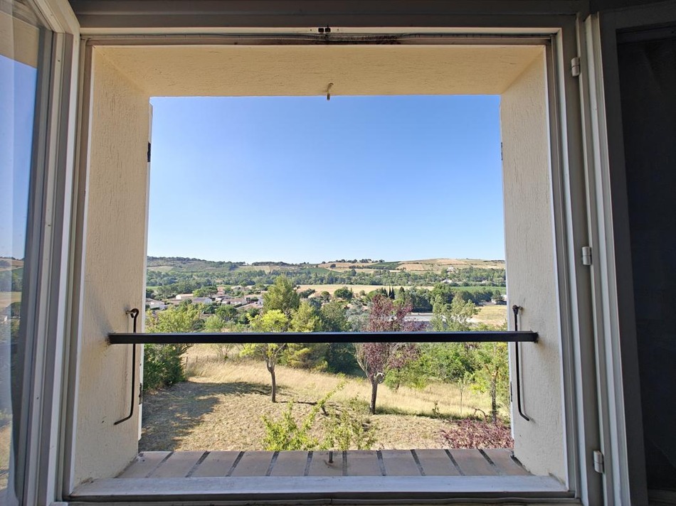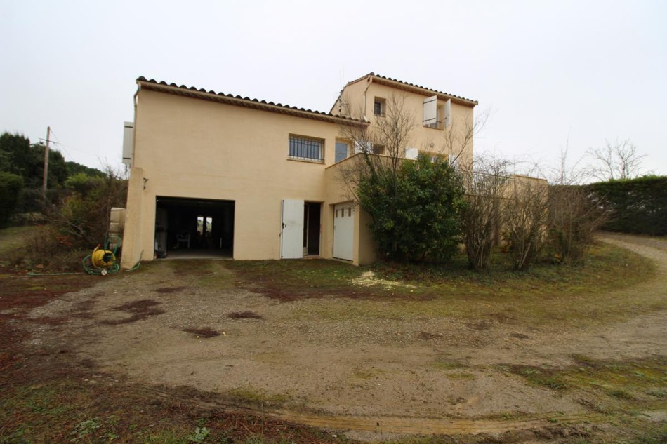 Detached villa 102m2, good condition. Single storey: fitted kitchen, living/dining room with fireplace, 2 bedrooms, shower room, reversible air conditioning, beautiful terrace with view. Upstairs: bedroom. Basement: shower room, bedroom, outbuilding, garage 50 m2. Large natural plot of land 2300m2.