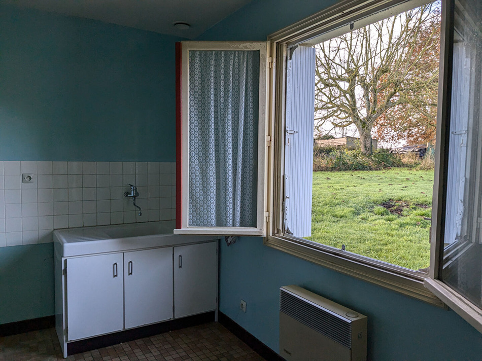For sale near JOSSELIN, pretty detached bungalow with a garage in the full basement, with laundry room-cellar, a separate kitchen to be fitted to your taste, a lounge/dining room with open fireplace, 2 bedrooms, a toilet and a bathroom. Attic that can be converted throughout. New compliant septic tank system will be required. All on a beautiful plot of land of approx. 1,398 m². In a hamlet overlooking the Nantes-Brest Canal. (5.75 % fees incl. VAT at the buyer's expense.)