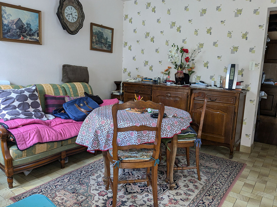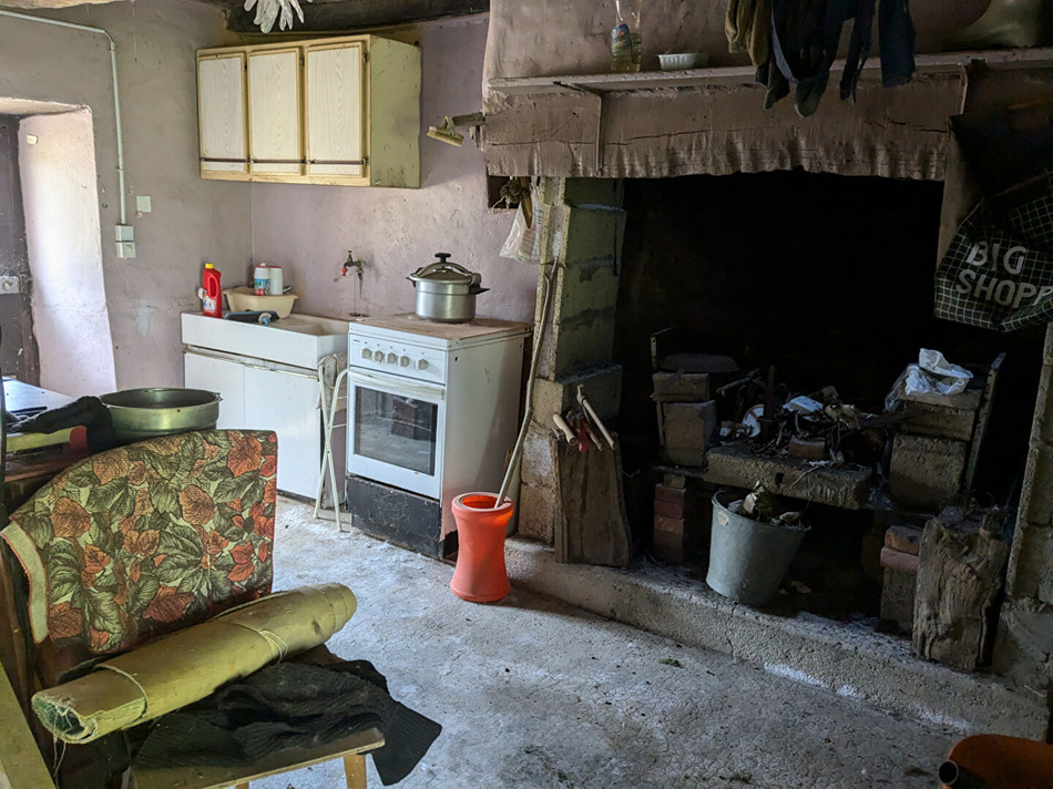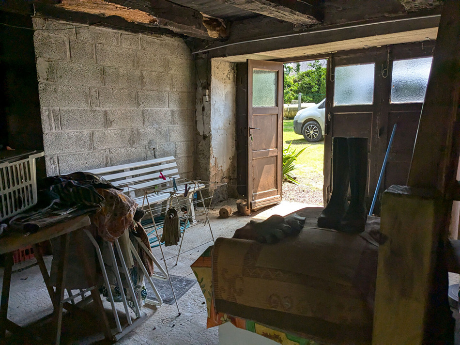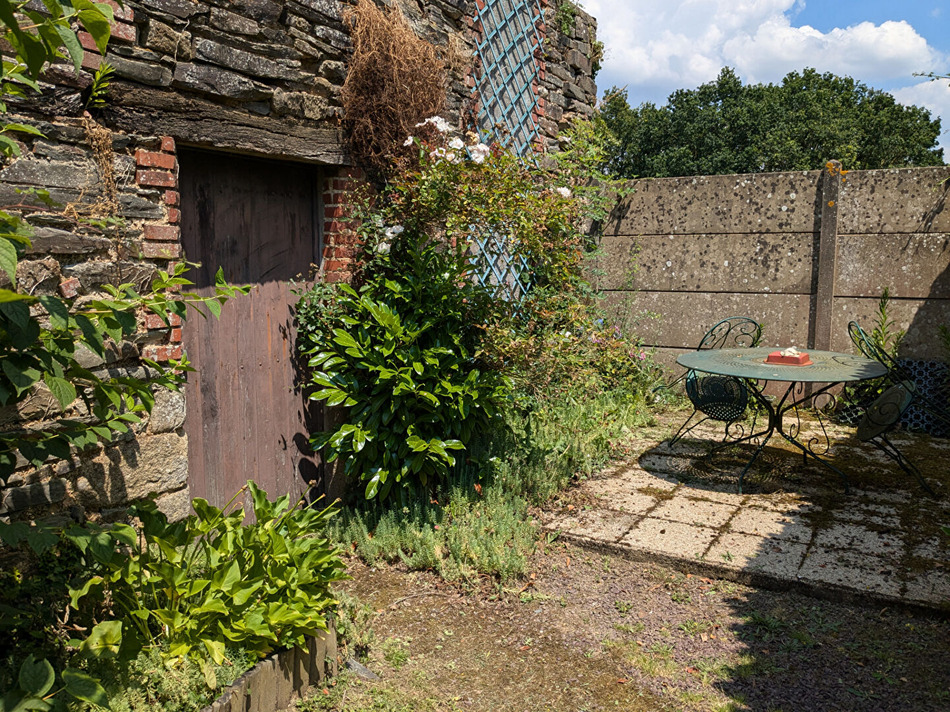 House for sale in the LOYAT countryside (Region of PLOERMEL): Kitchen, living room, lounge, veranda. WC Shower room. Upstairs: large landing, WC, one bedroom + sink and cupboard. Semi-detached on one side. Courtyard, private garden, all covering a little over 2000 m2. Large stone outbuilding including garage and tool shed on garden enclosed by hedges. Drainage to be redone. Less than 5 minutes by car from the towns with shops of LOYAT and GUILLIERS. Gas heating. (4.69 % fees incl. VAT at the buyer's expense.)