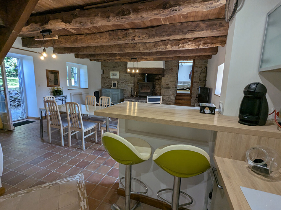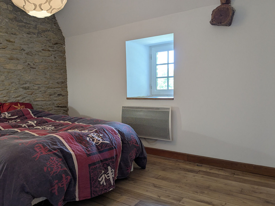 Splendid farmhouse in a quiet location for sale near PLOERMEL, set on a plot of 2073 m²: Fitted/equipped kitchen on living room with stove, one Bedroom and a shower room, WC; Another kitchen open to living room, and Another shower room and WC. 1st floor: large hallway, one "king size" bedroom, 2 other double bedrooms. The whole bathed in light. Garden around the perimeter. Some trees and fruit trees. Double garage insulated on concrete slab, with water and electricity. , well, beautiful wood joinery double glazing and tilt and turn windows. Ideal for accommodating family, friends or rental income in addition in the small, annex . About 11 minutes by car from PLOERMEL and JOSSELIN. A REAL CRUSH!! (4.78 % fees incl. VAT at the buyer's expense.)