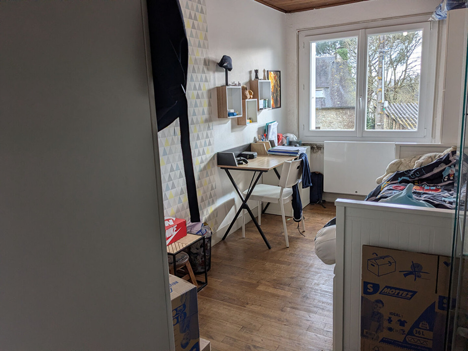 House for sale in the countryside of Guillac (close to Josselin and Ploërmel), featuring 4 bedrooms with a family bathroom and WC, as well as a kitchen/dining/living room. Pantry at the rear. Small front courtyard and garden at the rear, all covering approximately 1510 m². Double garage opposite. Recently renovated windows and insulation, electric heating and wood-burning stove. Ideal for a large or blended family. Very bright interior. Pleasant location near the Nantes-Brest Canal! (6.00 % fees incl. VAT at the buyer's expense.)