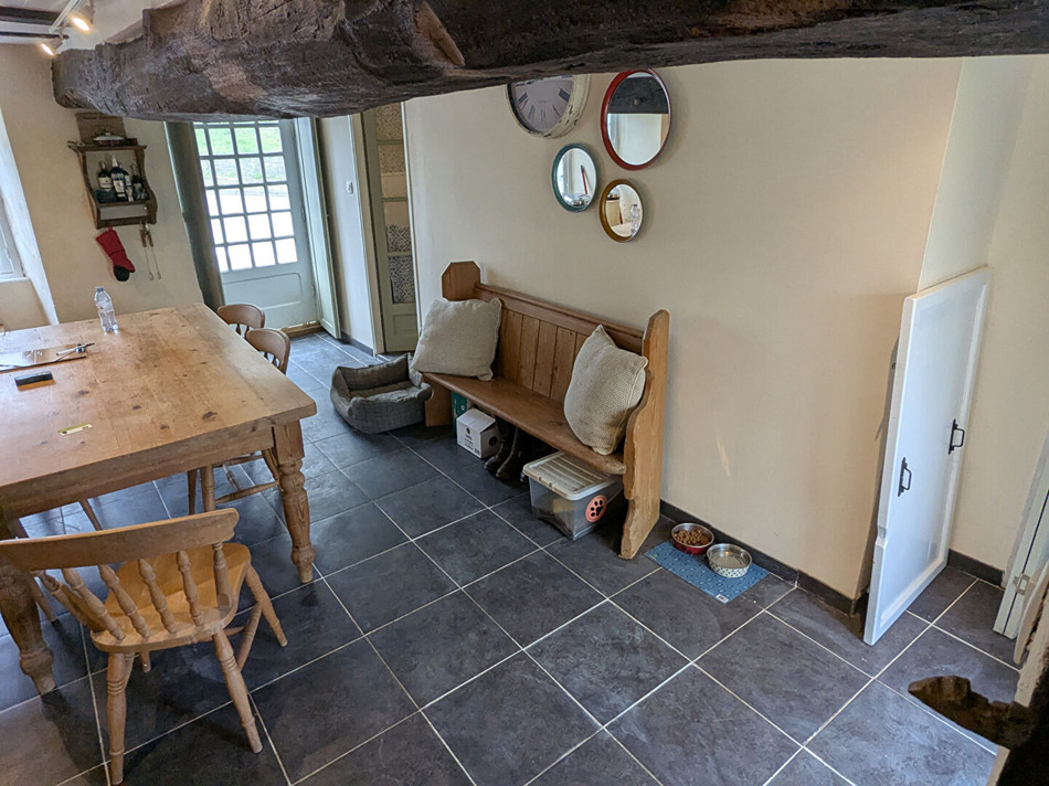 Charming character house for sale in a small village located 6 kms from Plumelec, 13 kms from Josselin, and 30 kms from Vannes. It comprises a lovely light-filled living room with an open-plan kitchen, two small storage rooms, and a bathroom with WC on the ground floor. First floor: a cosy lounge with parquet flooring, a fireplace, and a wood-burning stove. Second floor: two bedrooms with cathedral ceilings and parquet flooring, and a landing. A private, hedged garden of approximately 228 m² at the rear includes a tool shed/woodshed. Full of charm and authenticity! (6.00 % fees incl. VAT at the buyer's expense.)