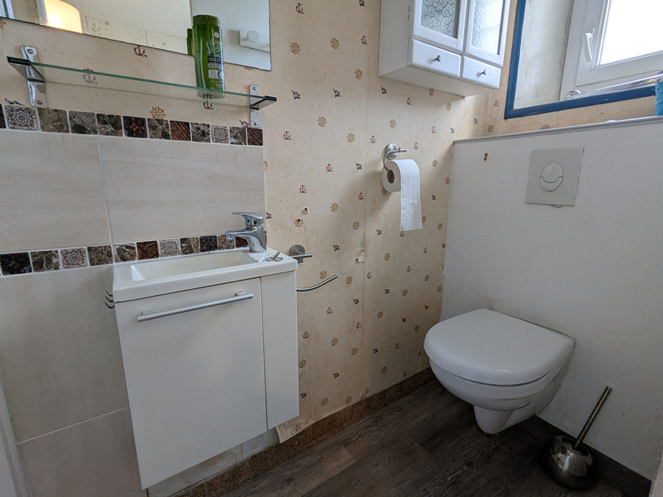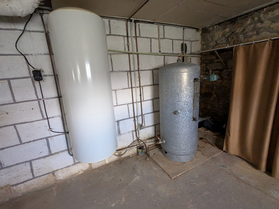 House with a large garden and 4 bedrooms for sale in the village of Roc Saint André: Garage/boiler room. WOLF oil-fired boiler and electric water heater, old water pump (out of service) and its tank/reserve on a well (plus mains water). On the raised ground floor: Entrance hall, WC. Living room with adjoining kitchen: bright and airy. Bedroom. Another bedroom with en-suite shower room and WC. First floor: Landing, 2 good-sized bedrooms, a bathroom with WC. An attic that could be converted into an office. Fully enclosed garden of approximately 1,600 m². Mains drainage. (4.12 % fees incl. VAT at the buyer's expense.)