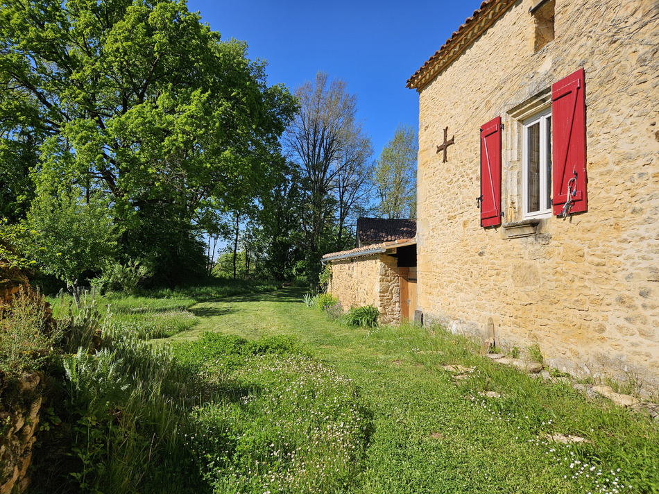 Natural stone house in a quiet hamlet near Belvès (14km). 35km from Sarlat. 19th-century construction, two cadastral plots totaling 1317m2. There is a natural stone outbuilding (former barn). 60m2 floor space. Cellar approximately 60m2. Residential house, 157m2 of living space. Garden level, entrance leading to a 46m2 living room with fireplace. Nearby, a 29m2 kitchen, a 3.5m2 shower room and toilet. A 21m2 bedroom (accessed via a few steps). Upstairs, three bedrooms, a bathroom, and a toilet. Wood floors throughout. A 7m2 landing leads to all the rooms on this level. Two terraces provide access to the living room and kitchen. Extensive renovations have been carried out; Wood-fired boiler and radiator system EUR40,000. Wooden staircase (pine) EUR4,000, wood joinery (pine) EUR25,000, electrical, living room floor insulation. Sanitation not up to standard. A peaceful living space, with the possibility of converting the barn (workshop, living space, etc.) and plenty of charm! We are available for further information.