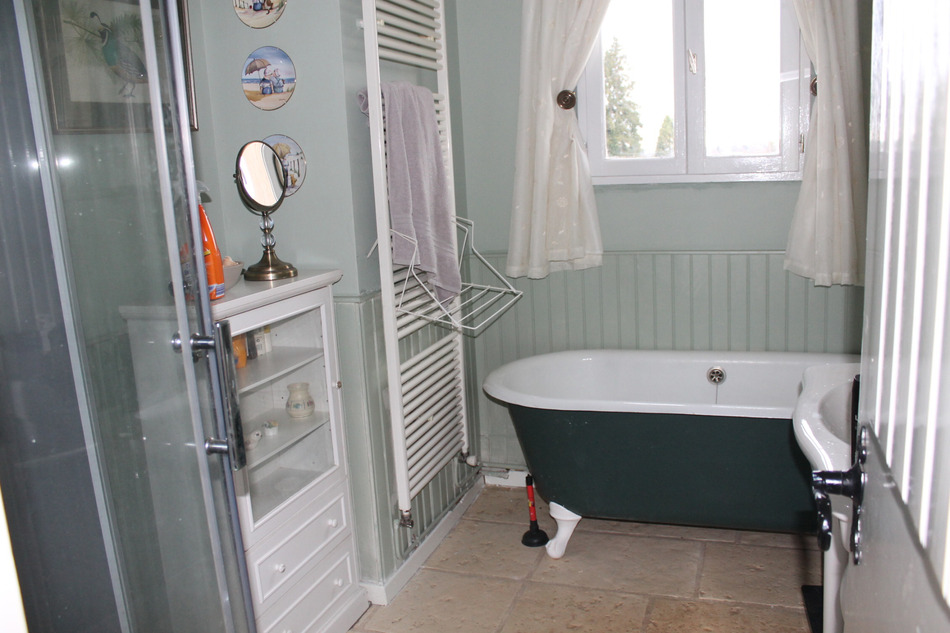 Toujours en rez de chaussée une grande chambre avec salle de bains ( douche et baignoire ) dressing .