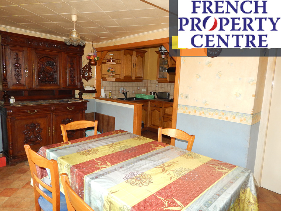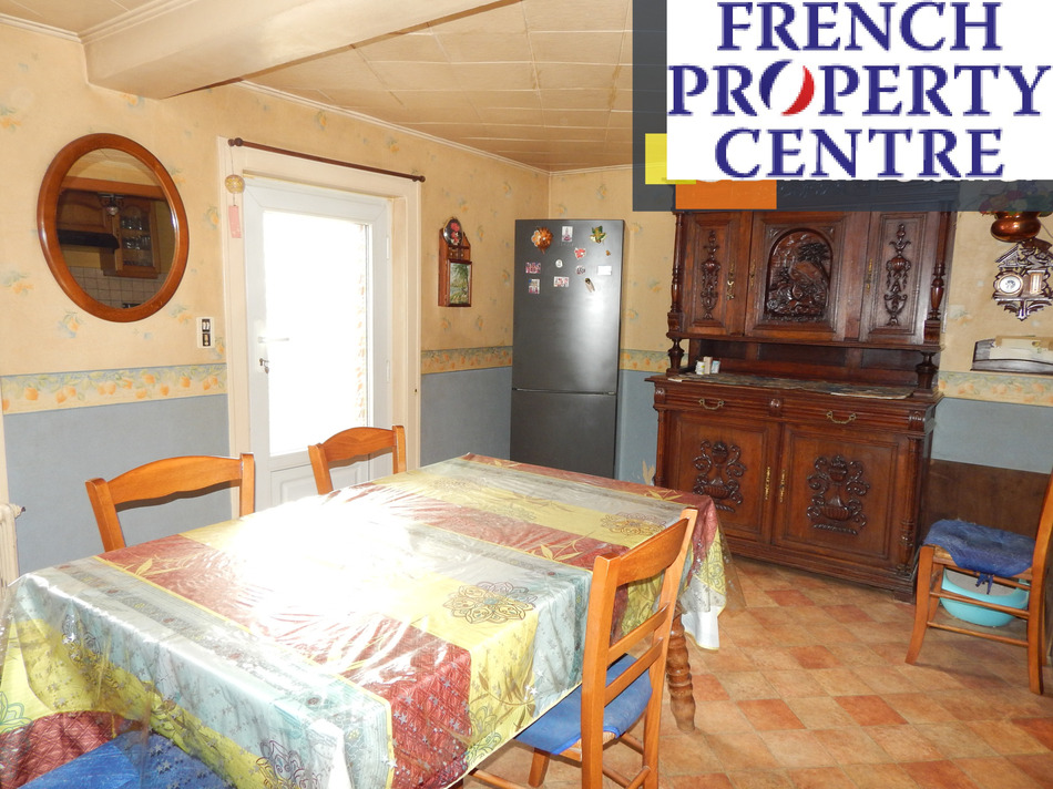 Etat Général : A RAFRAICHIR, Exposition : EST / OUEST, Evacuation : TOUT A L'EGOUT, Mitoyenneté : 2 COTES, Cuisine : Équipée, Construction : Non précisé, Vue : Non précisé, Chauffage : CENTRAL AU FUEL,