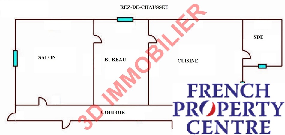 Rez-de-chaussée : une cuisine spacieuse (31 m²), un bureau (13 m²), un salon chaleureux (30 m²), une salle d'eau avec WC, et un dégagement accueillant.