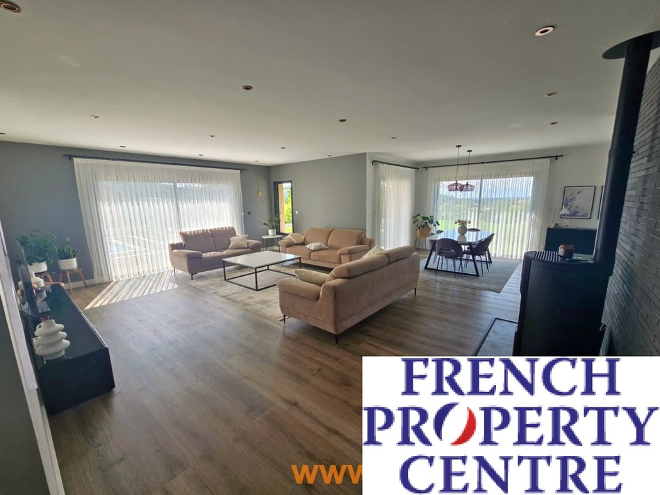 Dès le seuil franchi, vous serez séduit par l'harmonie des volumes et la luminosité qui baignent les lieux. La grande pièce de vie de 73 m², véritable âme de la maison, marie avec grâce une cuisine équipée et un salon spacieux, ouvrant généreusement sur la terrasse et la piscine. Un espace où se mêlent convivialité et raffinement, idéal pour recevoir ou savourer des instants en famille.