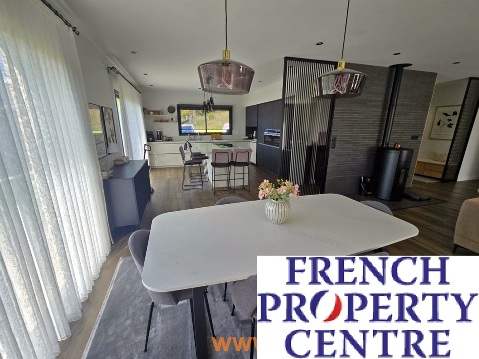 Bâtie selon les normes RT2012, cette maison allie performance énergétique et matériaux haut de gamme. Le chauffage au sol par pompe à chaleur (aérothermie) garantit une température idéale toute l'année, pour un coût annuel maîtrisé (environ 2 100 €). Les menuiseries en aluminium double vitrage, l'adoucisseur d'eau et la piscine enterrée chauffée achèvent de faire de cette demeure un joyau technologique et écologique.