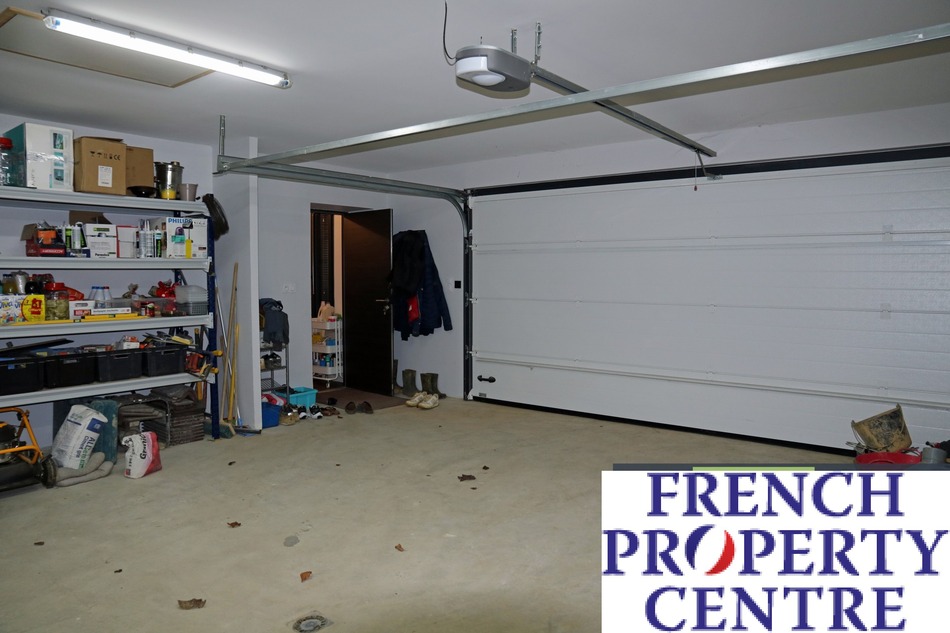 Un double garage avec porte sectionnelle motorisée accueille vos véhicules en toute sécurité, tandis que les abords soigneusement aménagés vous promettent un cadre extérieur aussi agréable que la maison elle-même.