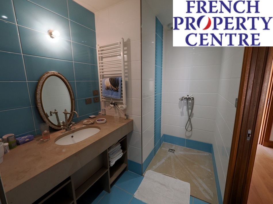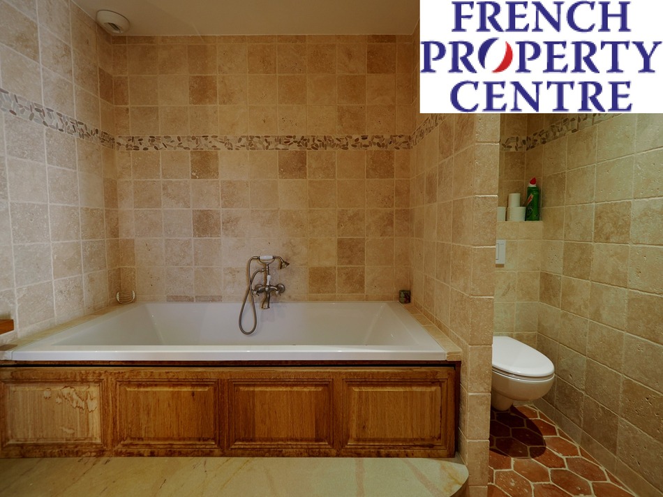 A l'étage : Salle de bains ( 15 m2 ) avec jacuzzi bordé de marbre bleu , 4 chambres ( 30 m2 avec cheminée , 9 , 18.5 et 19 m2 ) , wc avec lave mains ( 2 m2 ) , salle d'eau ( 3.4 m2 ) , dressing ( 2.6 m2 ) .