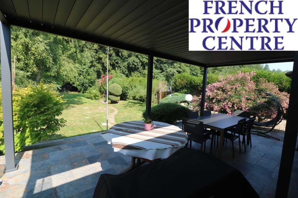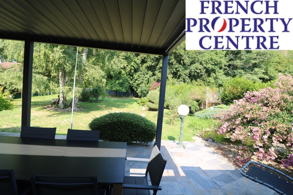Implantée sur un terrain paysager clos de 2 000 m², sans aucun vis-à-vis, elle bénéficie d’un environnement verdoyant et serein, agrémenté d'un bassin à poissons, d'une grande terrasse de 37 m² équipée d'une pergola bioclimatique, et d'un portail électrique assurant sécurité et confort.
