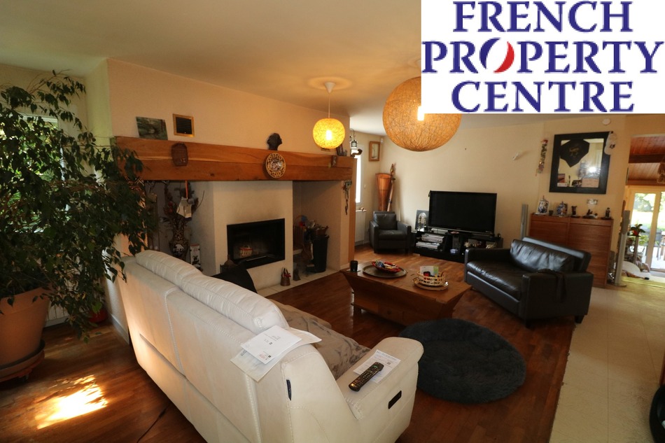 - d'une vaste pièce de vie lumineuse de 57 m² avec cheminée/insert,