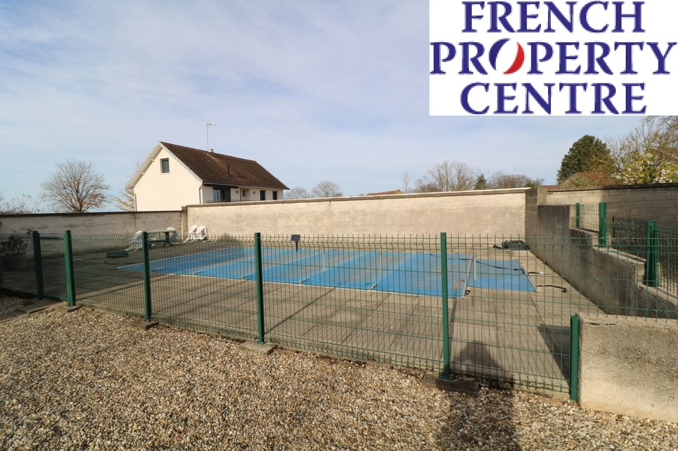 Chaussin, à vendre agréable maison de 5 pièces + 1 pièce supplémentaire à aménager, 95m² habitables, plusieurs dépendances, véranda de 34m², piscine enterrée de 8 X 4 mètres avec protection sur 910m² de terrain clos de murs.