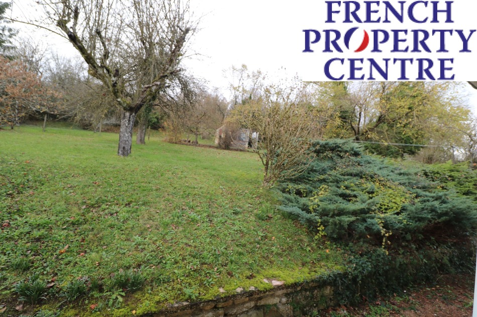 Extérieur : grand terrain clos de 1900m² avec belle terrasse carrelée, jardin et arbres fruitiers.