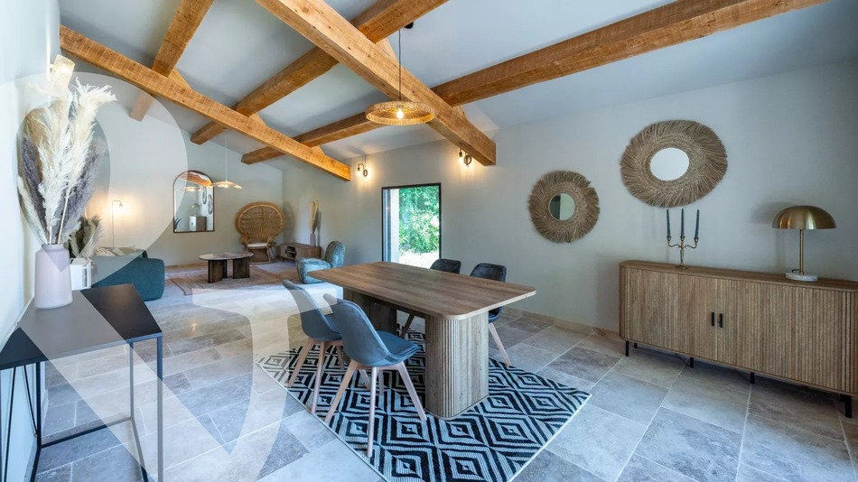 SOLE AGENT - Close to the sought-after village of Eygalières and in the countryside around Plan d'Orgon this handsome stone Mas offers around 178m² of living space and a total build of 197m². Located off a country lane at the end of a small, gravelled driveway, the property enjoys a bucolic, rural setting with no nuisances. The interior, featuring noble materials that give the property an undeniable cachet, comprises a bespoke kitchen, a welcoming and spacious living room and 4 en-suite bedrooms with shower rooms or bathrooms, 2 of which are on the ground floor. The tranquil 12,000m² grounds are sensitively landscaped and include a 12x5m swimming pool with various terraces. This is the ideal natural setting for those who appreciate the calm of the countryside yet are looking to be within easy reach of the vibrant cultural and social life of the area and take advantage of everything that the Alpilles has to offer.