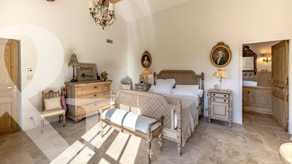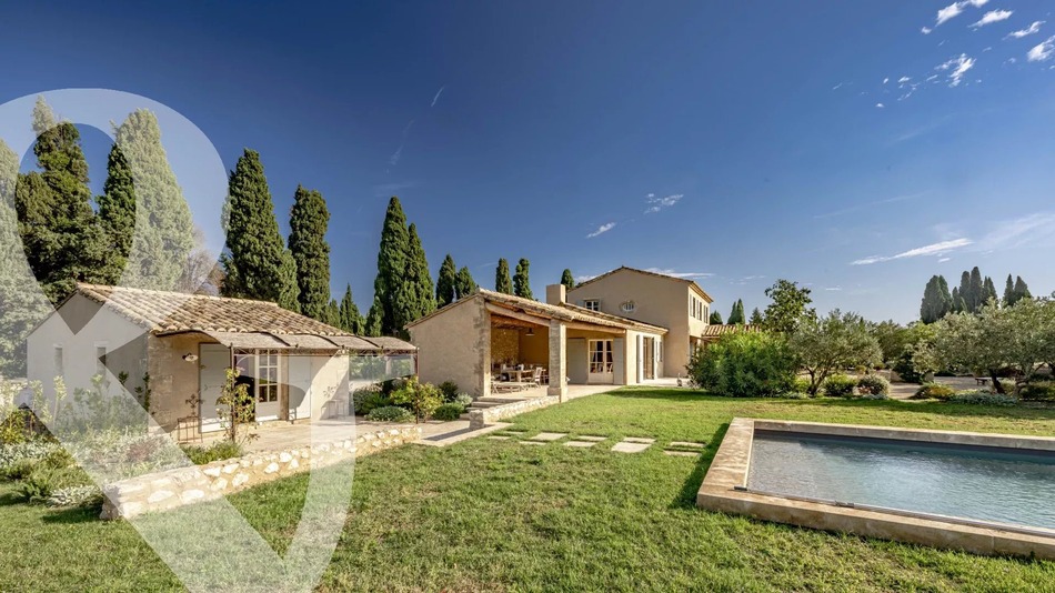 This splendid property, set within grounds of 17,000 m², has been restored to an exceptional standard and nestles within a tranquil and verdant position in the countryside around the sought-after village of Eygalieres. Offering a total built area of approx. 315 m², the light and bright interior comprises, on the ground floor, a kitchen with scullery, a dining room, an elegant sitting room with a fireplace, high ceilings and large picture windows and two en-suite bedrooms. Up on the first floor there are three more en-suite bedrooms and there is one further guest bedroom suite that is independent, ideal for receiving family and friends in complete tranquillity. Outside, there are several terraces which are ideal for passing long summer evenings and a 16m x 5m pool which sensitively blends in with the landscaped grounds. A view to the west of the Alpilles hills gives the finishing touch to this truly special home.