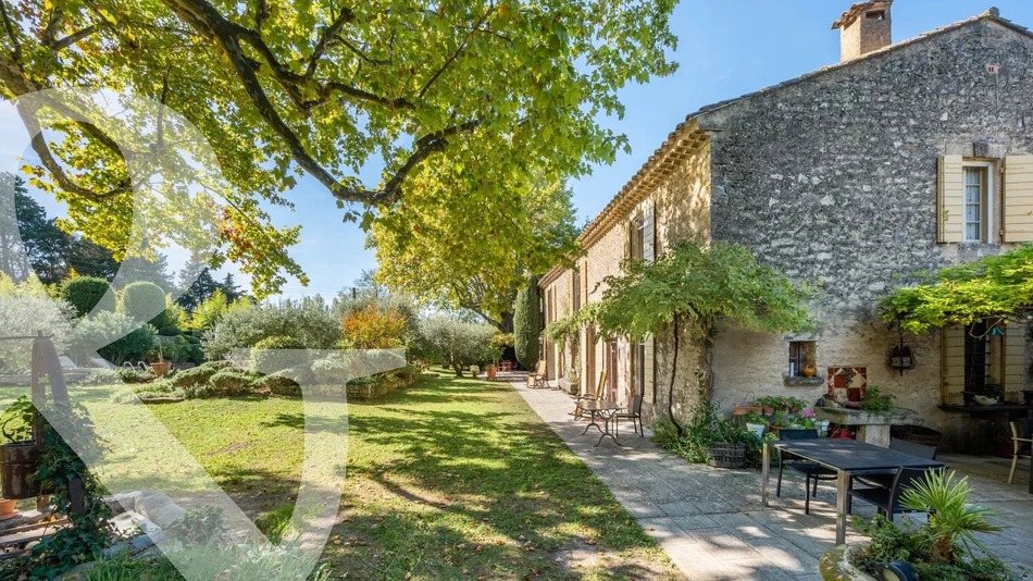 Occupying a privileged position and in a most bucolic setting, this handsome 18th century farmhouse has retained the character and atmosphere of the period and is a rare jewel in the peaceful countryside, just 5 minutes from the heart of the sought-after village of Eygalières. The property sits in a park of more than 2 hectares, benefitting from magnificent, century-old trees and lush vegetation. There is a total living area of over 470m², with the main house enjoying generous volumes and plenty of natural light: here, on the ground floor, the accommodation comprises a stylish, well-fitted kitchen, a double reception room with fireplace, a library, a bedroom suite and a lovely orangery. Up on the first floor there are a total of 6 bedrooms, 4 of which are en-suite and with the last 2 bedrooms sharing a family bathroom. There is also a caretaker's house of about 70m², a recording studio, a large workshop, 3 stables and 2 paddocks for horses. Set discreetly from the front terraces and shielded by flower beds is the swimming pool area, which is the perfect place to relax to the sound of the cicadas. This most delightful and historic country estate is a genuine family home, without pretention and exuding great character and charm. A rare find.