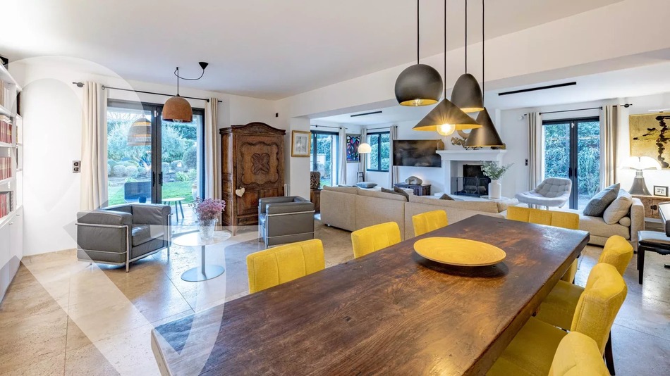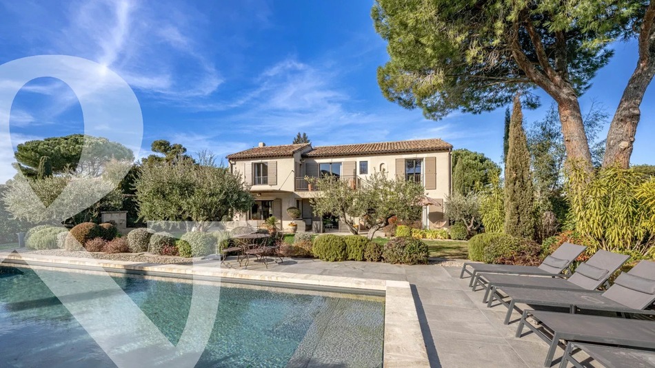 Just a few minutes' walk from the centre of Eygalières, in a sought-after and tranquil part of the village, this house was completely restored and extended in 2020. The renovations successfully combine the charm of high-quality, noble materials with the latest technology, creating an inviting home that is also ideal for entertaining. The interior, offering approximately 250 m² of living space comprises an entrance hall, a light-filled kitchen and a most attractive and convivial living room with fireplace, which alone extends to 75 m². A lovely en-suite bedroom completes the ground floor. Upstairs are 3 superb bedroom suites, including a master bedroom of around 50m². The house is set in 1181 m² of fully enclosed, attractively landscaped grounds, with a 11 x 4m swimming pool that blends in harmoniously. Excellently presented and in a prime location this home radiates a sense of well-being and relaxation.
