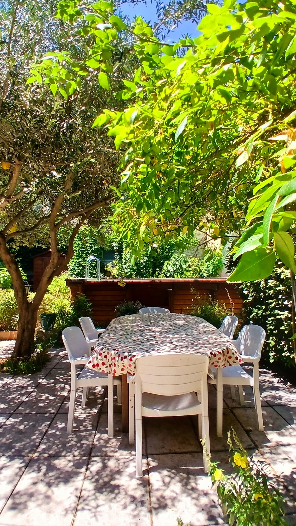 Exterior = A 240 m2 courtyard with above-ground swimming pool (chlorine with heat pump, 7×3.5m) + well with pump.