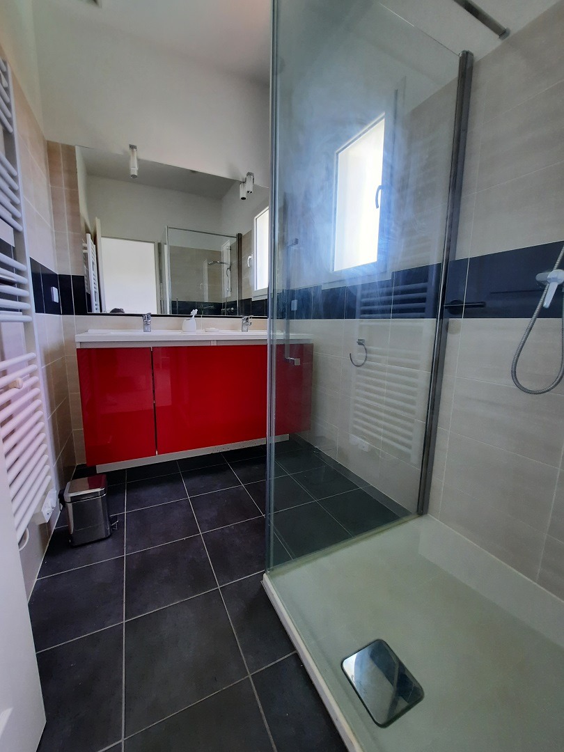 1st = Hall of 4.4 m2 + 3 bedrooms of 10 m2, 10.1 m2 and 12 m2 + bathroom of 4.8 m2 (bath, shower, washbasin) + WC with handbasin + laundry room of 3 m2 + en suite bedroom of 13 m2 with dressing room of 6.4 m2, washroom of 4 m2 (italian walk-in shower, 2 washbasins) and independent WC with handbasin.