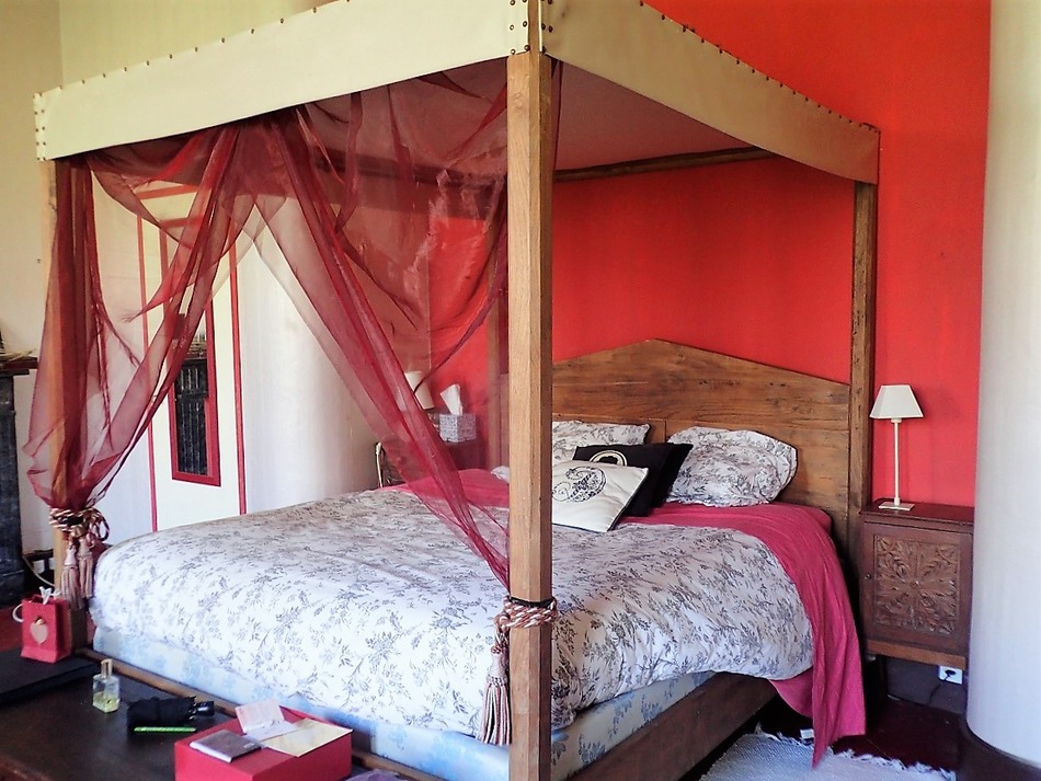 Outside = Large gated and walled grounds with trees + south facing garden + pool 5x9m + paddocks + original fort ruins + barns of 1000 m2 (9 buildings to include garage, stables and storage).