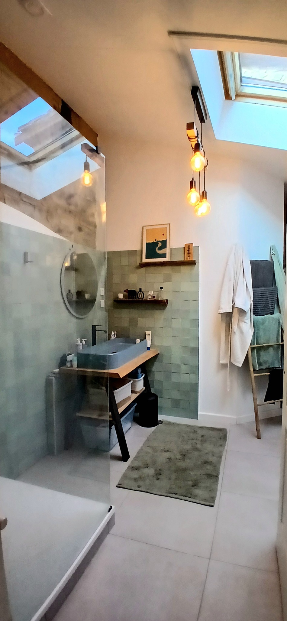 Ground = Living area of 38.28 m2 (large bay windows and attractive exposed stone walls) with a mezzanine of 14 m2 (ideal for creating an office space or additional sleeping area) + fully equipped kitchen of 12.90 m2 (base units, worktop, electric oven, gas hob, dishwasher, sink) + hallway of 2.72 m2 + bedroom of 17 m2 with a lovely dressing area (door opening to the exterior) + shower room of 8 m2 (walk-in shower, vanity unit, cupboards with laundry area and hot water tank).