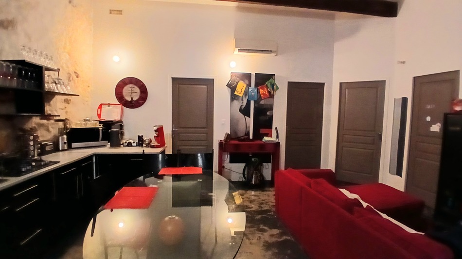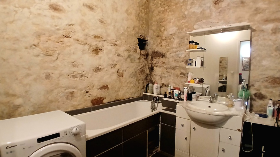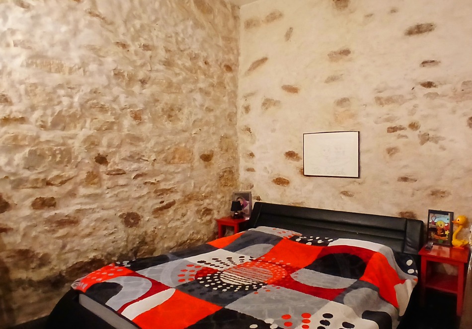 Stone shed (former barn, 2 sides) completely converted into a home, offering a living area of 141 m2 on 2 levels, it consists of 3 bedrooms, a magnificent living room of 66 m2 with a very high ceiling, 2 kitchens (one brand new !), a bathroom, a laundry room, a terrace of 20 m2 (to finish) which will offer a magnificent view, and a large garage of 45 m2. Very atypical with character, offering a number of possibilities, from a single dwelling to 2 completely independent homes !
