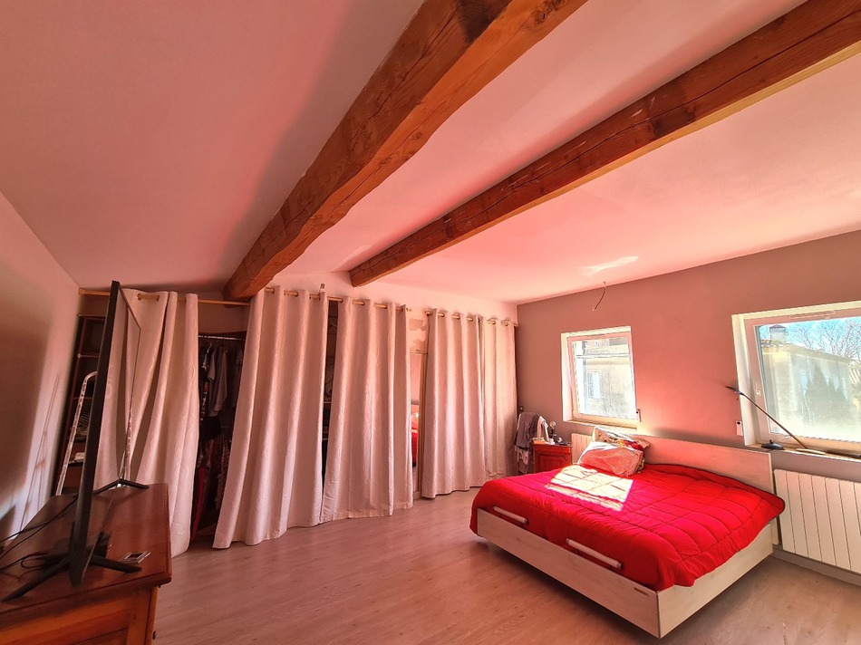 2nd = Large and pleasant bedroom of 27.21 m2 with nice view on the hills + room of 5.81 m2 (possibility to create a shower room, water arrivals already there) + terrace of 10 m2 with view on the roofs.