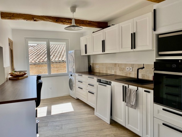 Character stone village house, entirely renovated to a very high standard over the past year, with 165 m2 of living space. The house offers a modern open-plan lounge and dining area, a new and well equipped kitchen giving on a 18 m2 sunny and private terrace, 4 bedrooms, 2 bathrooms (with potential for a 3rd) and a 32 m2 garage with storage and spa. A quality house with loads of charm, character, a spacious year round family home with excellent rental potential.