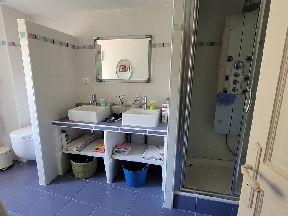1st = 44 m2 living room/kitchen (worktop, electric oven, hob, extractor hood) opening onto a lovely 25 m2 terrace shaded by wisteria.