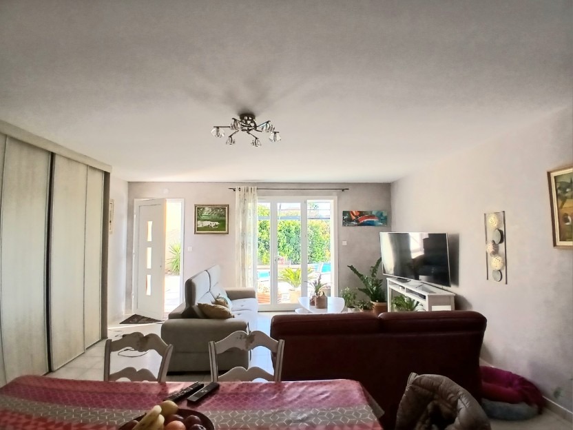 Single storey villa built in 2005, perfectly maintained, offering 122 m2 of living space with 4 bedrooms, a bathroom, a laundry area, a living room with open-plan kitchen, on a fully enclosed 600 m2 land with swimming pool, terraces and several parking spaces ! Peace and quiet ! With lovely views !