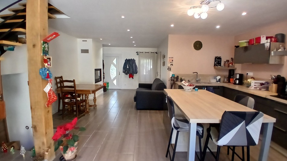 Additional features = Fully renovated throughout (electricity, plumbing, roof, :) + tiled flooring + parquet flooring + double glazing + wood-burning stove + reversible air conditioning + electric heating + fibre optic connection + new septic tank (2025, compliant with regulations) + BRL water supply with filtration system + estimated amount of annual energy consumption for standard use: between 1090 Euros and 1570 Euros per year. Average energy prices indexed on 2021, 2022 and 2023 (including subscriptions) + annual property tax of 1260 Euros.