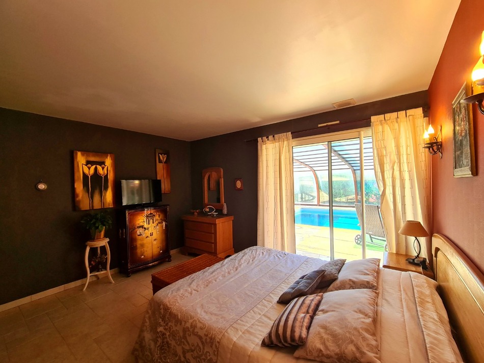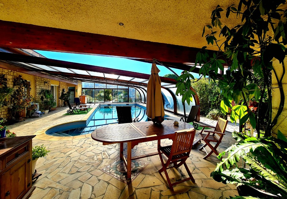 Pleasant architect-designed villa built in 2002, offering 130 m2 of living space, including 3 to 4 bedrooms, 3 bathrooms (2 outdoor ones), a living room with lounge/dining room and open kitchen, plus a laundry area. There's also a large 130 m2 basement with double garage, wine cellar and additional bedroom. All this on a pleasant 3202 m2 plot with a barbecue area, a stone garden shed, a large Gard stone fountain, as well as a 150 m2 heated swimming pool that is retractable and a large terrace overlooking the Caroux! On the outskirts of the village, in a peaceful setting, yet close to the shops!
