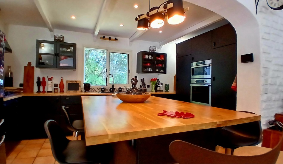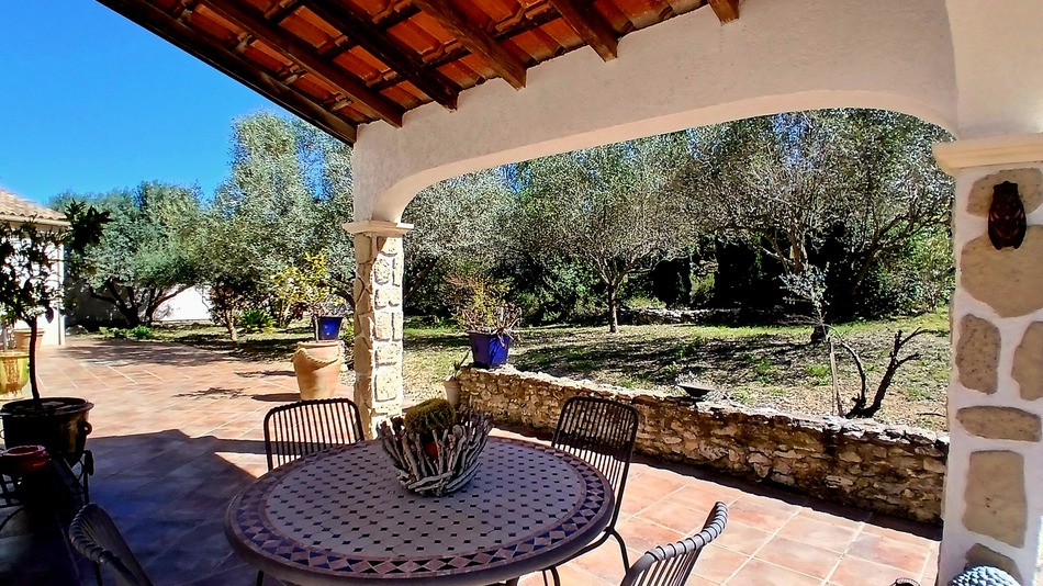 Set in a true haven of peace, surrounded by olive trees and mediterranean scrubland, this superb villa (in perfect condition, built in 1996) with a living area of 172 m2 offers a bright and spacious living area with a fully equipped open-plan kitchen, a large mezzanine space, a utility room, 3 bedrooms (including a master suite), a bathroom, as well as a double garage. In addition, there is a fully independent and totally equipped guest house offering 50 m2, ideal for seasonal rental or for hosting guests. All set on a magnificent landscaped plot of 4782 m2 (with further building potential), where peace and serenity prevail. About hundred olive trees enhance the tranquil atmosphere and offer the opportunity to produce your own olive oil. Several fruit trees, a private pool area with views, barbecue, and a bread/pizza oven make it ideal for entertaining guests A true haven of peace at just a few minutes walk from all amenities !