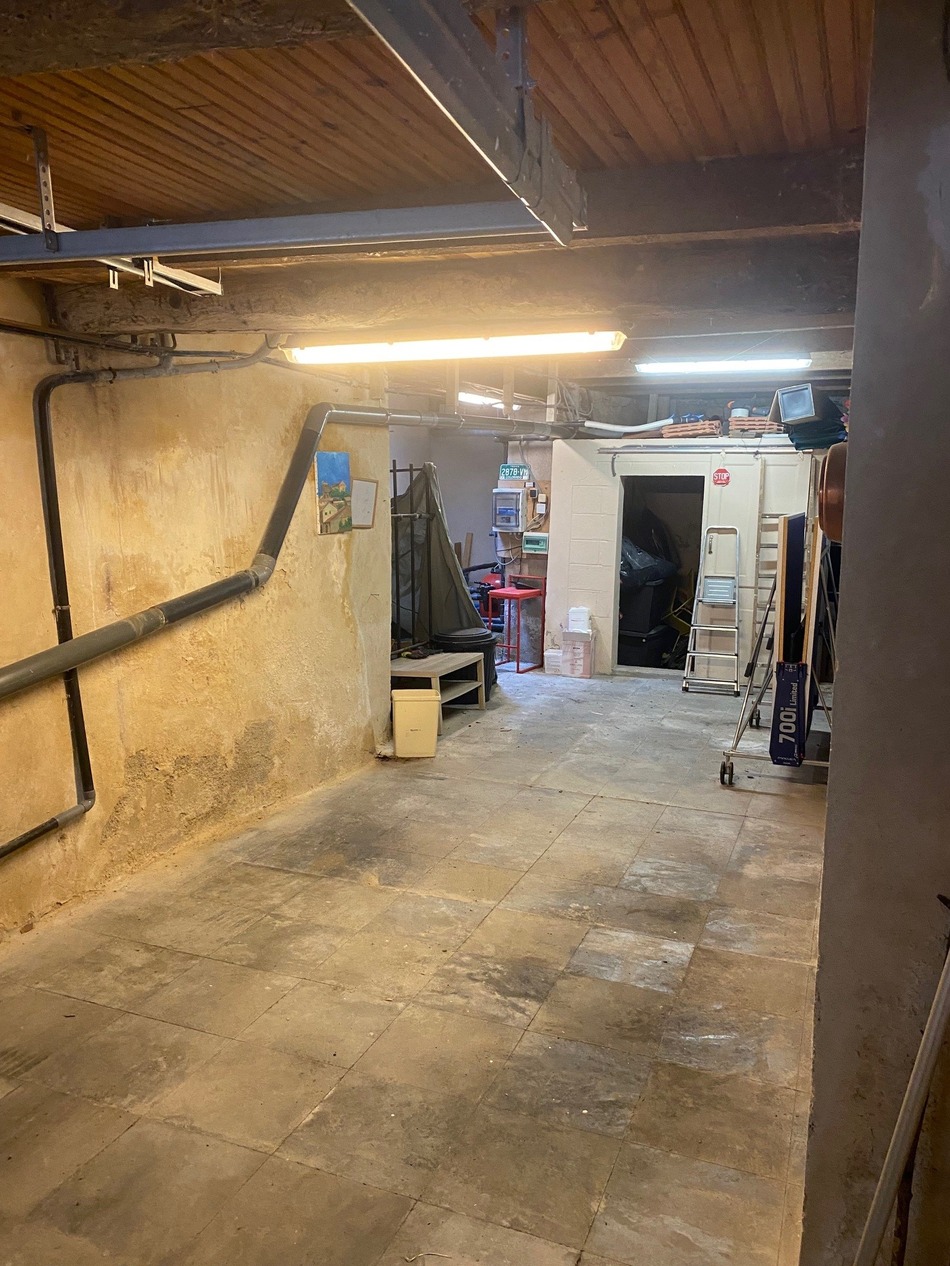 Ground = Large garage of 28 m2 with electric door, shower room (shower, WC, basin), utility room and pool system.