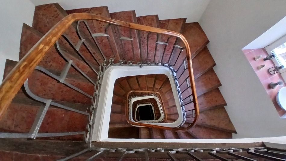 Ground = Entrance via a large south-west facing terrace of about 30 m2 + living room of 24.64 m2 + lounge of 30.90 m2 (period marble fireplace) + kitchen of 20.12 m2 (upper and lower cabinets, electric oven, microwave, double sink, electric hob) + bathroom of 6.47 m2 (marble sink, shower, WC) + lounge of 28.38 m2 (period fireplace) + hall (second entrance) of 11.28 m2.