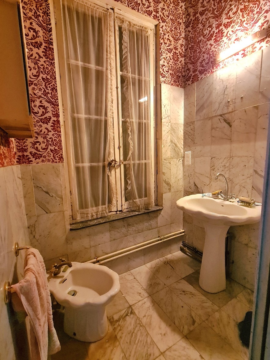 1st = Beautiful old staircase leading on a hallway of 19 m2 (with a sink and old bidet and the end) + bedroom of 19.35 m2 (balcony and marble fireplace) + bedroom of 20.76 m2 (balcony and marble fireplace) + bedroom of 16.32 m2 + bedroom of 14.41 m2 + corridor of 5.41 m2 + corridor of 3.91 m2 + bedroom of 13.84 m2 (balcony and cupboard) + dressing area of 3.41 m2 + bathroom of 5.58 m2 (bath, sink, bidet) + WC of 1.90 m2.