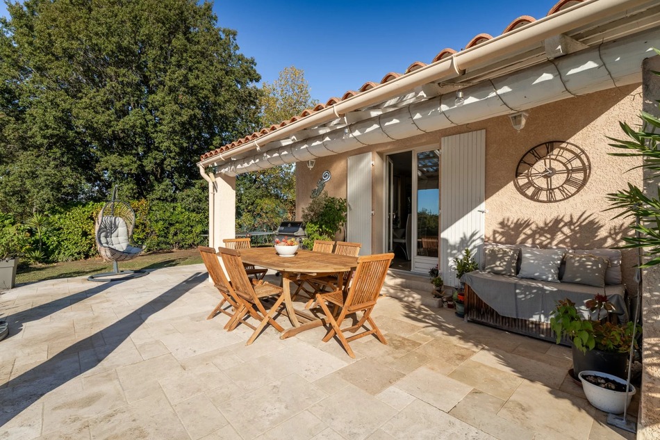 Nestled in the heart of Biot's sought-after Bois Fleuri neighborhood, this 90 m² villa offers an exceptional living environment. With 3 bedrooms and 4 main rooms, it's perfect for a family looking for comfort and tranquility. The villa is equipped with all modern conveniences, such as reversible air conditioning and double-glazed PVC windows, guaranteeing excellent heat and sound insulation. Inside, you'll discover a warm living space with an insert fireplace, ideal for creating a convivial atmosphere on cooler evenings. The open-plan kitchen and spacious living room open onto a sunny terrace, extended by a beautifully landscaped garden. Outside, the sparkling pool invites you to relax and enjoy the warm summer days. The surrounding landscape offers views of the hills, perfect for admiring sunsets from the terrace. It also offers the possibility of creating an extra bedroom, or even adding a second floor. Don't miss this unique opportunity to make this villa your haven in Biot.